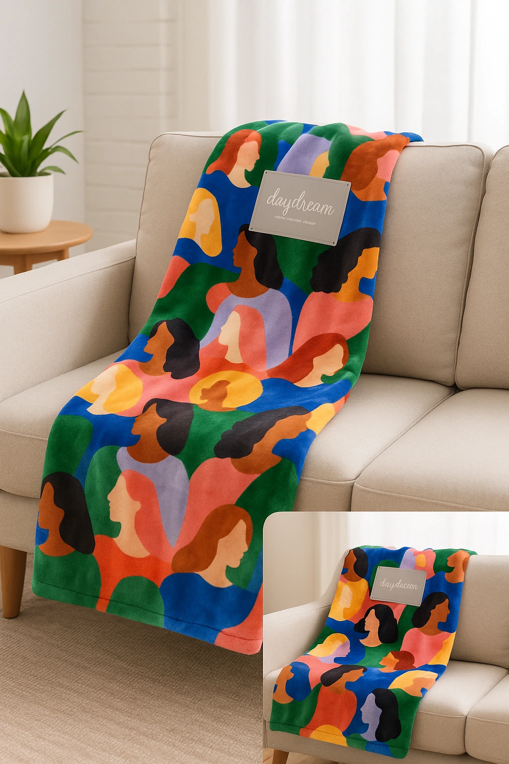 Wrap yourself in color, comfort, and culture. This beautifully designed Daydream plush throw features a vibrant, modern illustration celebrating unity, diversity, and the beauty of women. Crafted from 100% ultra-soft polyester, it offers a velvety, cozy feel perfect for curling up on the sofa, adding texture to your bedding, or elevating your home décor.