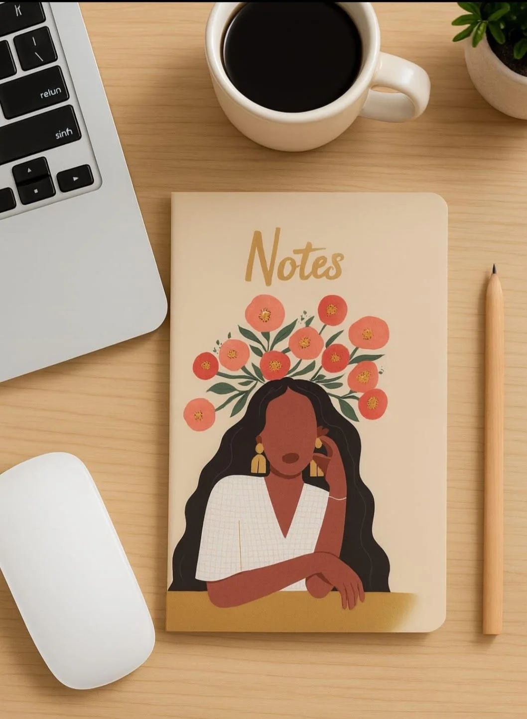 Discover inspiration every day with our Floral Art Notes Notebook. Featuring a stunning cover illustration of a woman with flowing hair beautifully adorned with vibrant, blooming flowers, this notebook is an ideal companion for capturing your thoughts, ideas, dreams, and daily plans. Crafted with care, its compact A5 size fits perfectly in your bag, while the high-quality, lined pages provide a smooth writing experience. Available in a graceful pastel palette, this elegant notebook also makes a thoughtful gift for creatives, students, or anyone who appreciates artistic stationery.