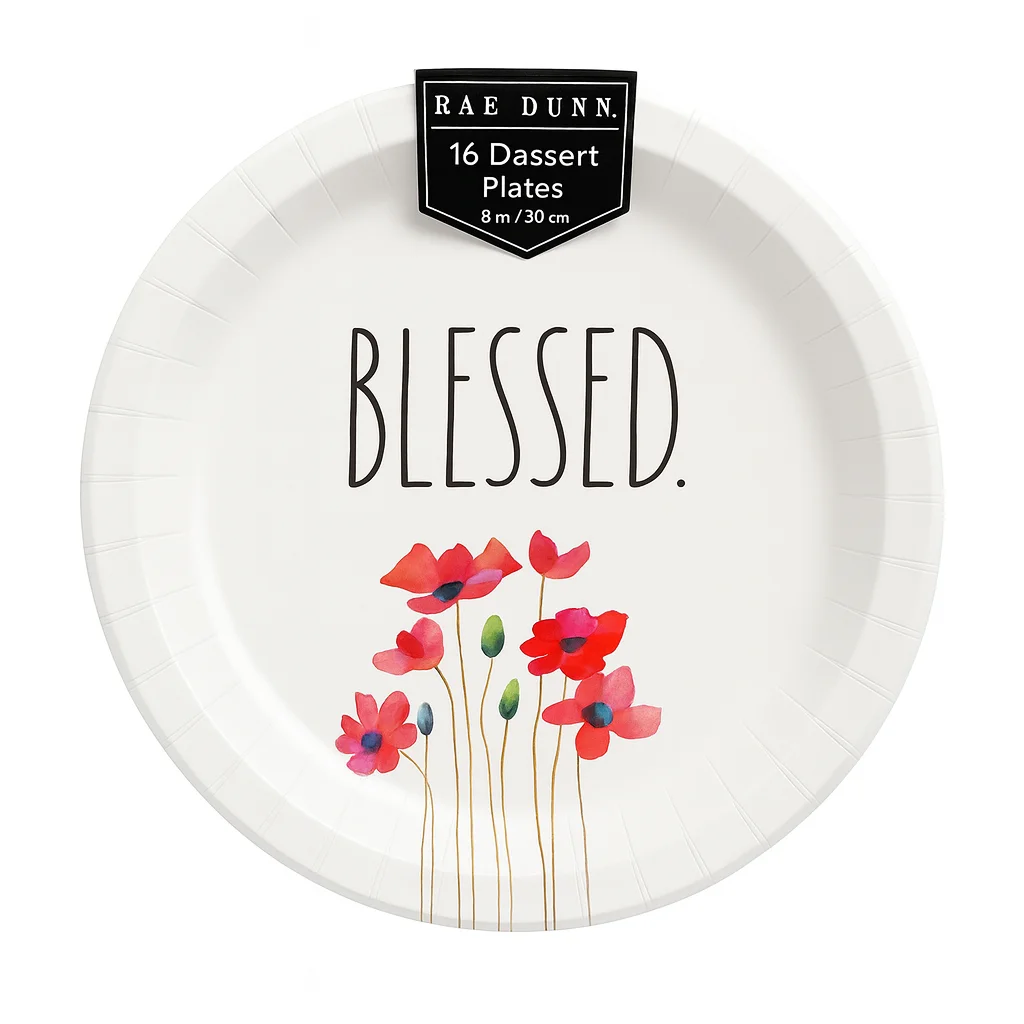 Serve your sweets with style using these Rae Dunn 8-inch dessert plates, featuring the signature “Blessed” script and vibrant watercolor florals. Sturdy, adorable, and perfect for birthdays, brunches, garden parties, and everyday entertaining.