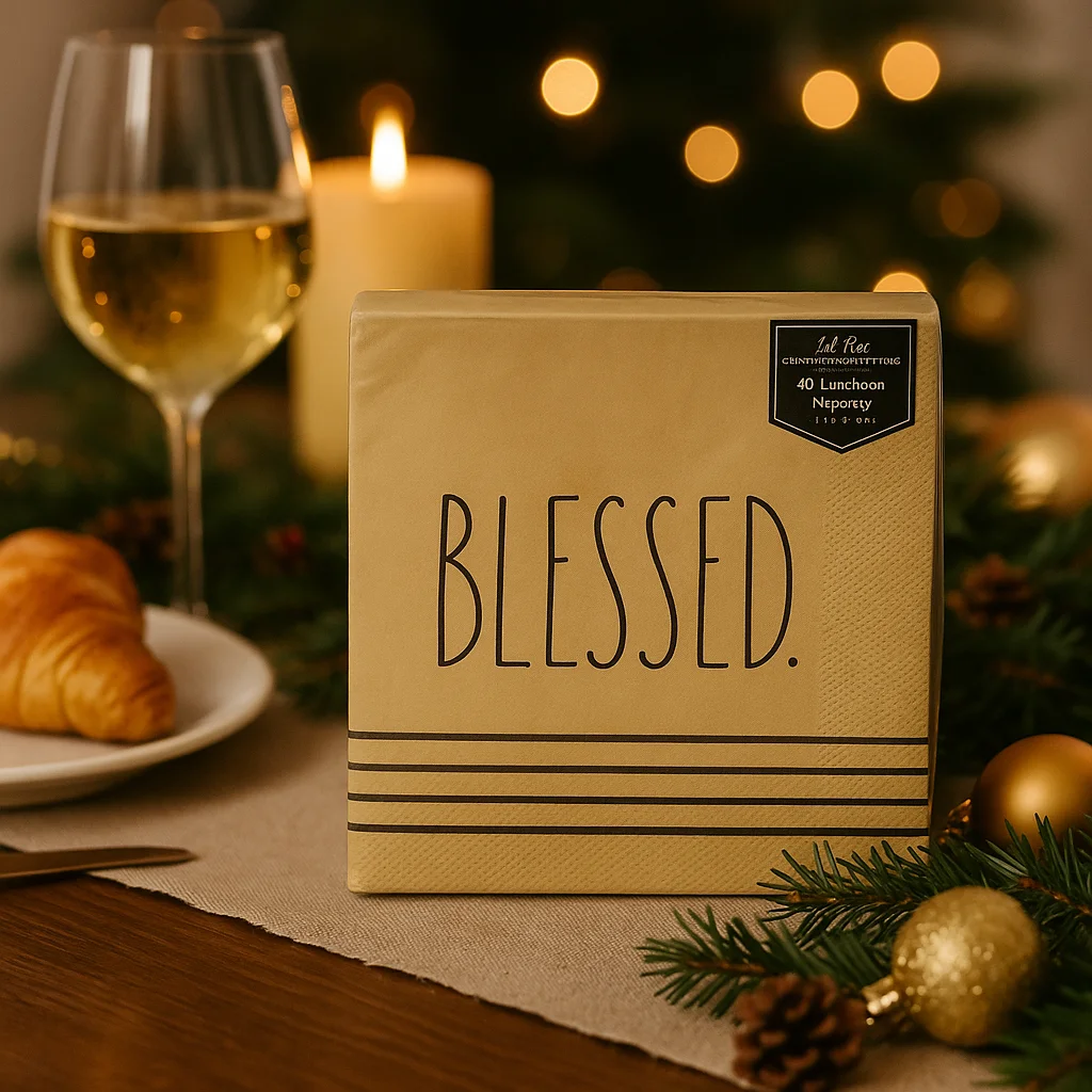 Add a warm, elegant touch to your table with these premium Rae Dunn Signature Collection luncheon napkins. Featuring bold black lettering on a soft gold background, each napkin pairs modern simplicity with festive charm. Perfect for holiday gatherings, special celebrations, or everyday meals where you want to elevate the moment.