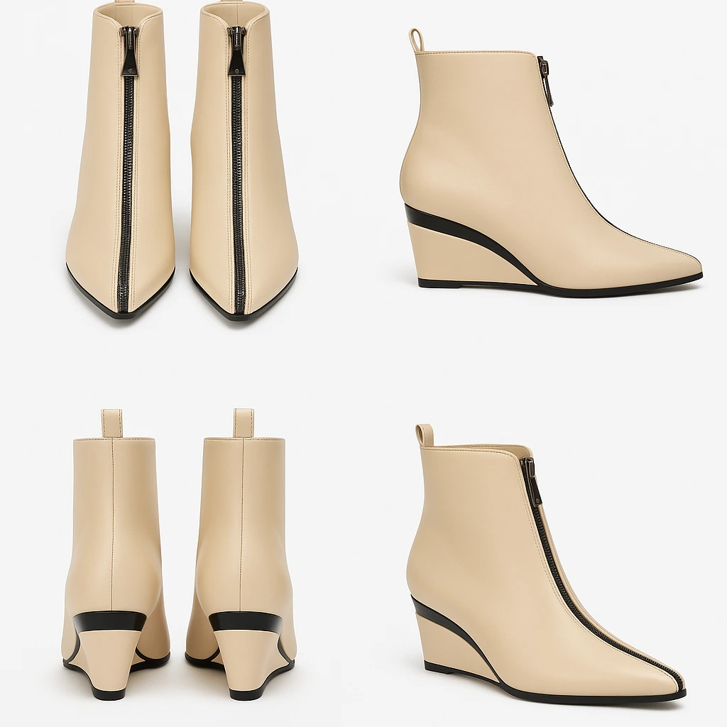 A sleek, modern ankle boot featuring a smooth vegan leather finish, sharp pointed toe, and bold front zipper. The sculpted heel adds just the right amount of edge, making this pair perfect for elevating jeans, dresses, or weekday looks.